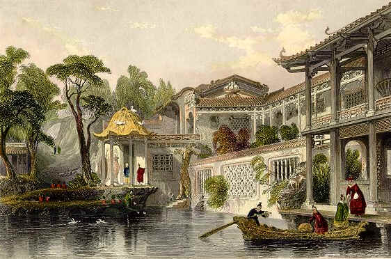 Garten des chinesischen Händlers Consequa bei Kanton. Nach einer Zeichnung von T. Allorn, 1858