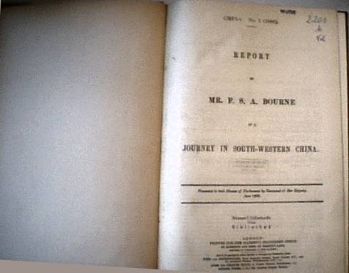 F. S. A. Bourne: Report of a Journey in South-western China -- presented to both Houses of Parliament by Command of Her Majesty, June 1888 |