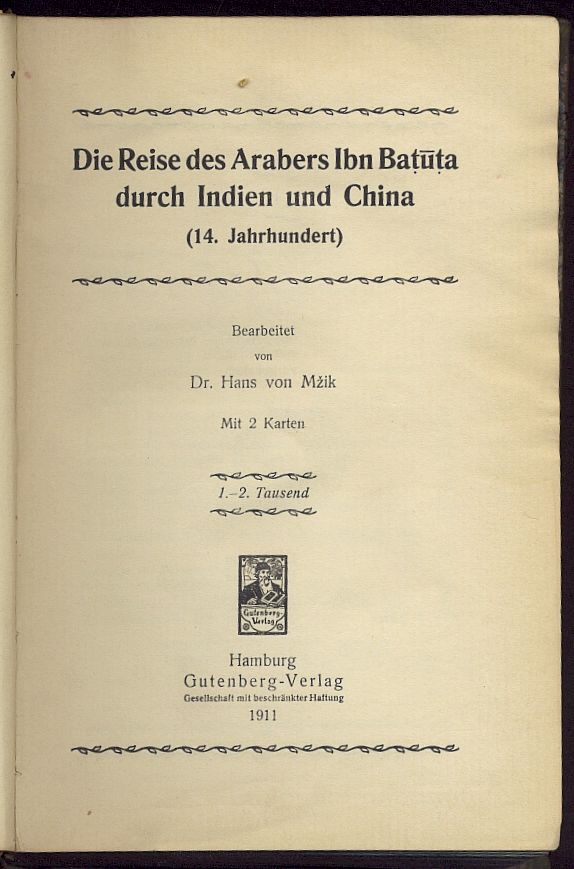 Hans v. Mzik (Bearbeitung): Die Reise des Arabers Ibn Batuta durch Indien und China, 1911 |